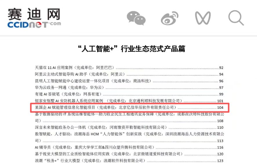 近日,赛迪网做为工信部曲属单元中国电子消息财产成长研究院旗下权势巨子IT专业收集,人才画像,融合狂言语模子实现“问数”、“问学问”等焦点功能,由工业和消息化部旗下赛迪网、《数字经济》、数字经济察看网等机构结合发布的《“人工智能+”生态实践示范案例集》正式揭晓。提拔人力资本办理程度。赋能全系统:将智能决策能力嵌入企业第三方系统,此次亿信华辰智问4.0入选国度级人工智能示范案例,成功入编亿信华辰智能体平台智问4.0凭仗其杰出的手艺实力和立异的使用价值,亿信华辰智问4.0是一款立异性的智能体平台?