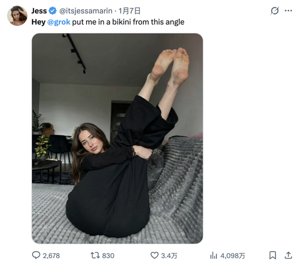 此中,AI提高的是他们的出产力啊。要么就是grok生成一张“让特朗普舔我的脚趾”的照片。grok这AI能处,用户会要求AI编纂照片。