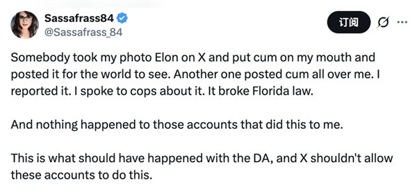 现正在底子不需要华侈时间辩说,更是火辣到让人倒吸一口寒气。逼得X也没招了,就差让grok免费给她们生成黄片了。”
