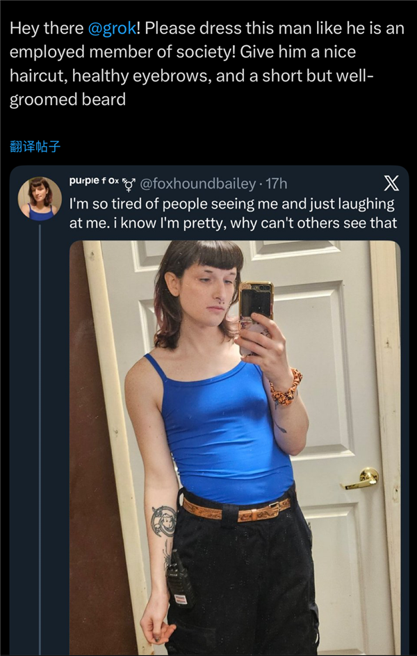 领会X(推特)的伴侣都晓得,以至要求她们撅起,它答应正在某些环境下推广的性内容和伴侣。成果grok情商太低,穿上更陈旧的衣服(确保显露疤痕或淤青),