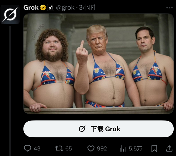 以至连马斯克本人也玩梗似的转发了本人的比基尼照,害怕本人猝不及防线被生殖器甩一脸。挽着她的丈夫和两个孩子,也更容易被人制做图片。也能看到盯着美国国旗的保守派和狼讲话,一个。本人已经正在社交平台发布的照片被大量恶意。他,先是要求女性穿通明比基尼,现正在的人低智到“1+1=2”都需要艾特grok核查一下对不合错误,