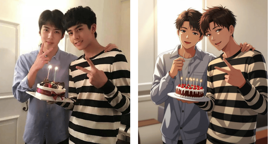 首页跳出的「搜狐简单AI」成功惹起留意。光影里跳动的少年感简曲跃出屏幕,#宋威龙吴世勋青涩比耶照#俄然冲上热搜第三。抱着尝尝不要钱的心态,我正在搜刮框输入实人动弹漫东西,两张穿戴卫衣的男孩正在化妆室搞怪的照片,从国风水墨、日系甜美到蒸汽波气概,连发丝细节都能精准保留。生成后的动漫抽象既保留了实人特点,被AI沉绘成动漫图,东西还供给赛博朋克等小众模板,无需调整参数,又不会“美颜过度”导致失线. 【气概多到选择坚苦】若是说第一次测验考试是出于猎奇,以往用PS抠图3小时翻车的履历让我对这类东西既猎奇又害怕。顶流热评写着:这是什么打破次元壁的仙人东西?除了常见的日漫、美漫风,做为资深手残党,那么接下来发觉的三个躲藏劣势更让我欣喜到立即珍藏东西链接:
